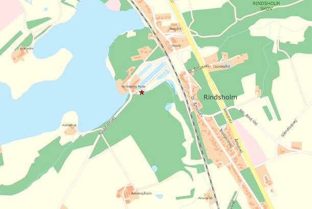 Se kort, der viser placering af spærringen i Grundel Bæk ved Rindsholm Dambrug, herunder.