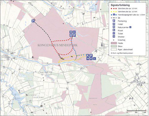 Fra 3 P-pladser er der bl.a. adgang til afmærkede vandreruter.